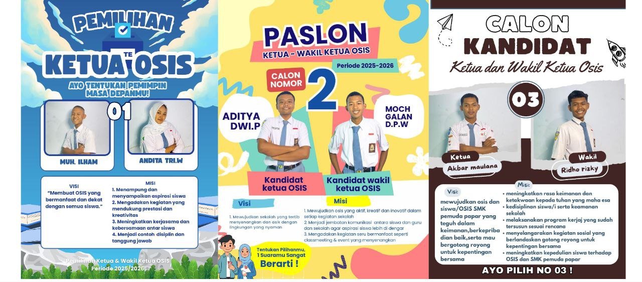 PEMILIHAN KETUA OSIS PERIODE 2025/2026, TIGA PASANGAN CALON SIAP BERTARUNG